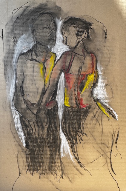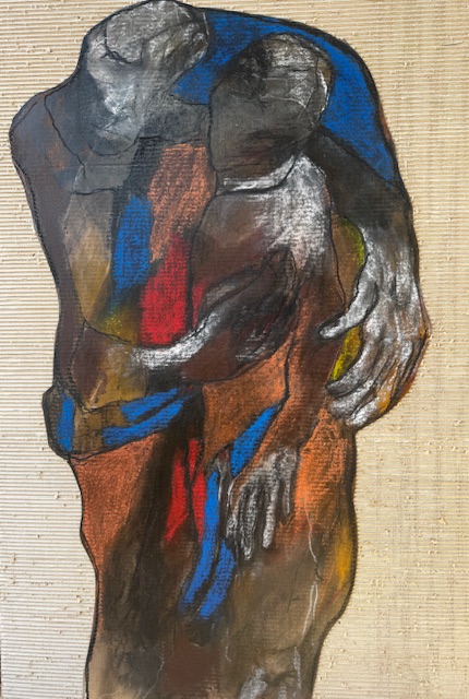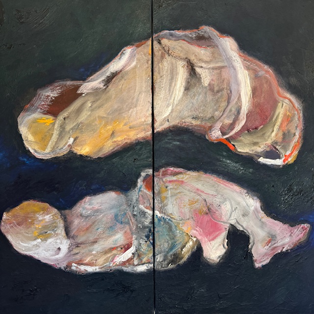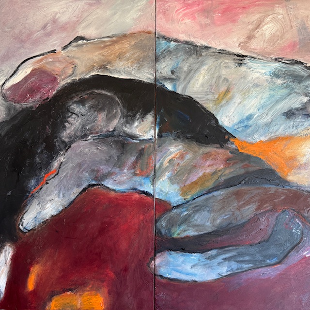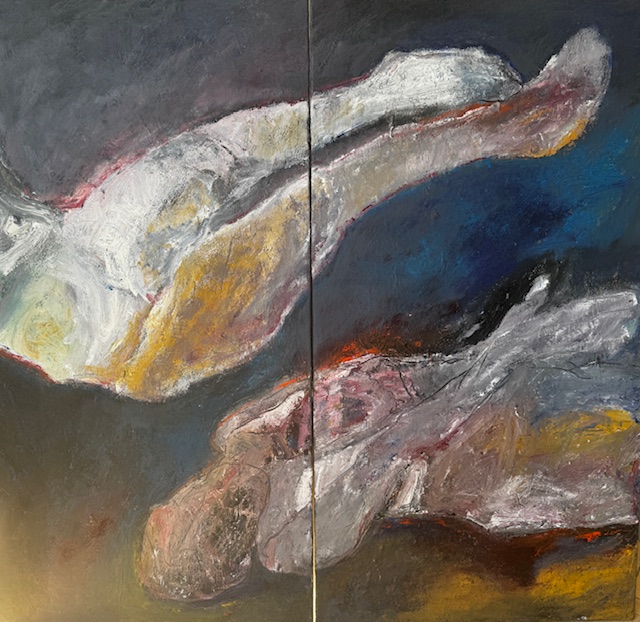 Pour entrer dans le monde des émotions humaines ― l’être humain est au cœur de son travail ― Anne Lerognon utilise la couleur, le trait, le noir, la matière, l’effacement et aussi le vide. Terre, huile, fusain, pigments sur toile, la matière s’invite. La transformer. Avec force, avec douceur, comme une quête. Naissent alors parfois des figures, des corps, en mouvement ou retenus, suspendus à leur existence.